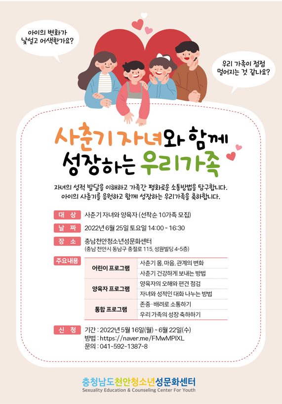 사춘기 자녀를 둔 가족들의 많은 참여를 기다립니다.^^