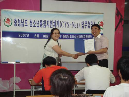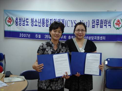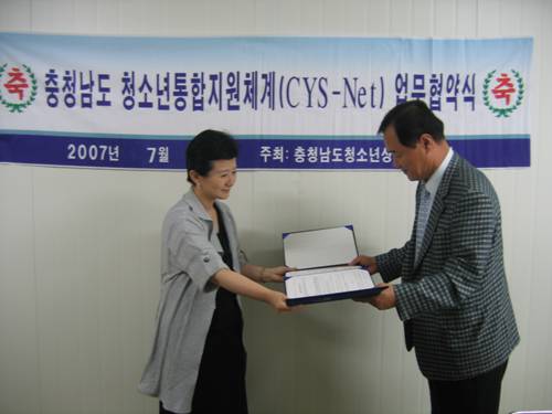 2007년 업무협약식 2926 | 최고관리자 | 2007-11-14 2007년에 진행되었던 업무협약 진행 사진 중 일부 천안종합고용지원센터, 충청남도가정위탁지원센터, 천안지역아동센터연합회, 호서직업전문학교