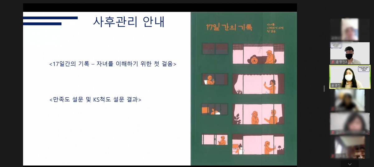 청소년 인터넷・스마트폰 과의존 부모교육 934 | 상담홍보담당자 | 2022-07-07 2022년 청소년 인터넷・스마트폰 과의존 부모교육 2회차를 온라인 실시간 비대면 교육으로 진행하였습니다.주말임에도 불구하고 청소년 자녀의 인터넷・스마트폰 문화를 이해하기 위해 모이신 많은 청소년 보호자 분들의 모습이 너무 멋있게 느껴졌습니다.청소년들의 건강하고 올바른 인터넷・스마트폰 이용습관을 위해 저희 충청남도청소년진흥원도 끊임없이 노력하고 부모 및 보호자 분들의 관심에 귀 기울이겠습니다.
