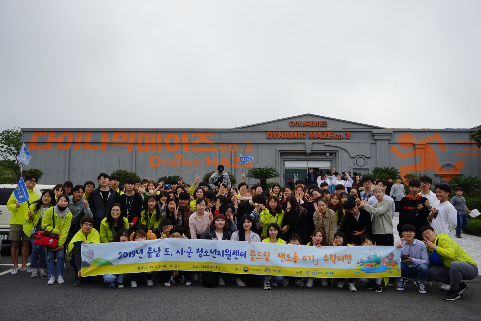 2019년 충남 학교 밖 청소년 수학여행 '맨도롱' 운영 1351 | 최고관리자 | 2019-11-11 - 기간: 2019. 4. 24~26, 2박3일간 - 장소: 제주도특별자치도 일대 - 내용: 도내 13개 시,군 청소년지원센터 꿈드림과 연합한 제주도수학여행(문화,체험활동 및 대인관계형성프로그램 등)