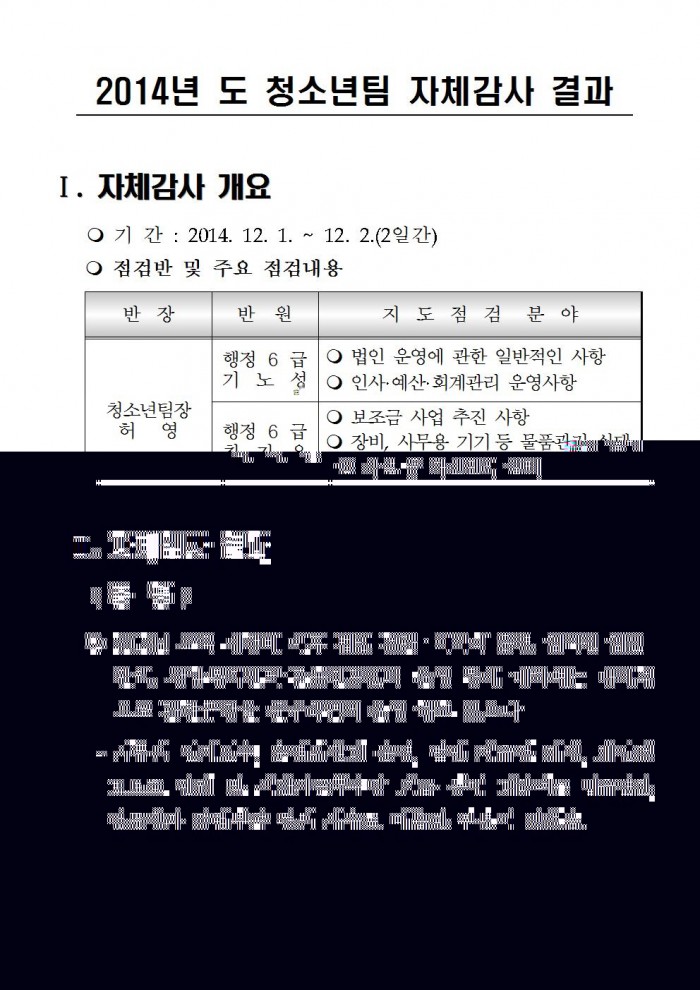 2014년 도 자체감사 결과를 다음과 같이 공시합니다.
