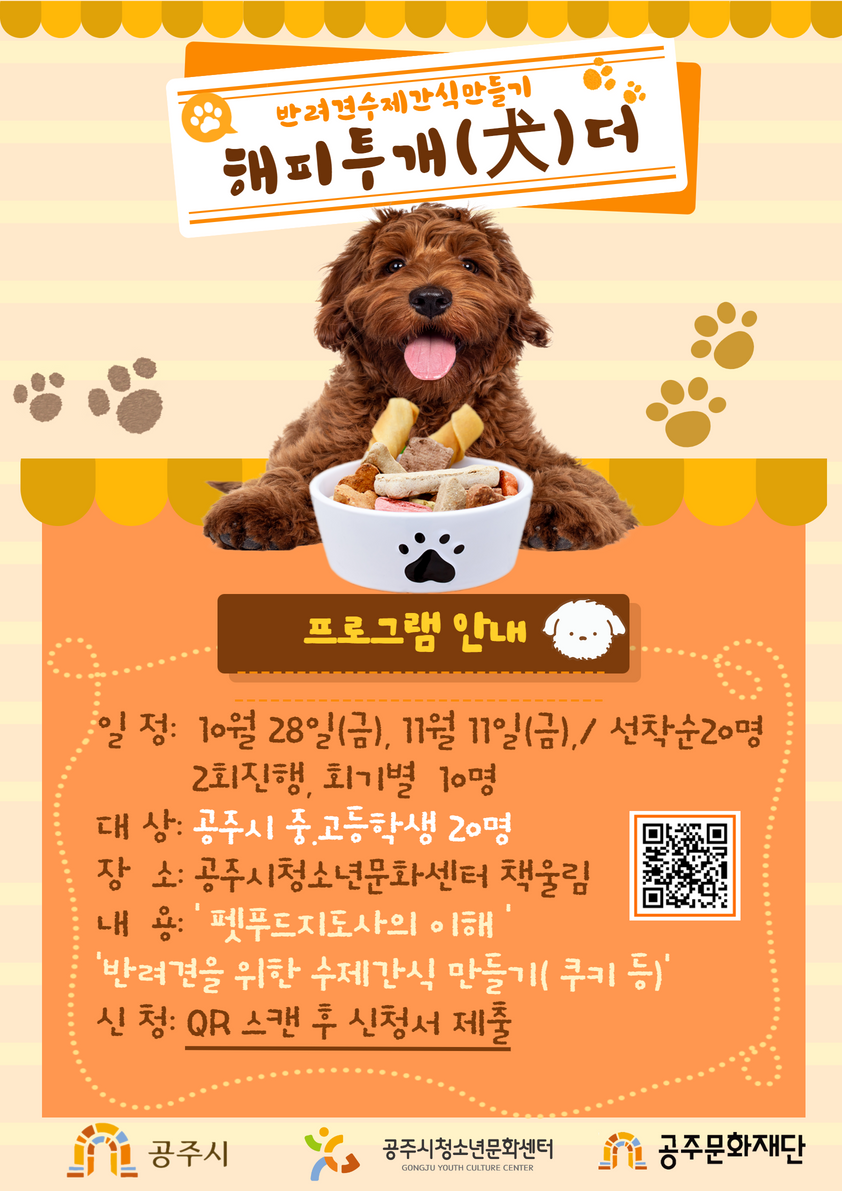 - 내용: 펫푸드지도사의 직업에 대해 탐색하는 기회를 제공하고, 반려견을 위한 수제간식을 만들어보는 프로그램 진행