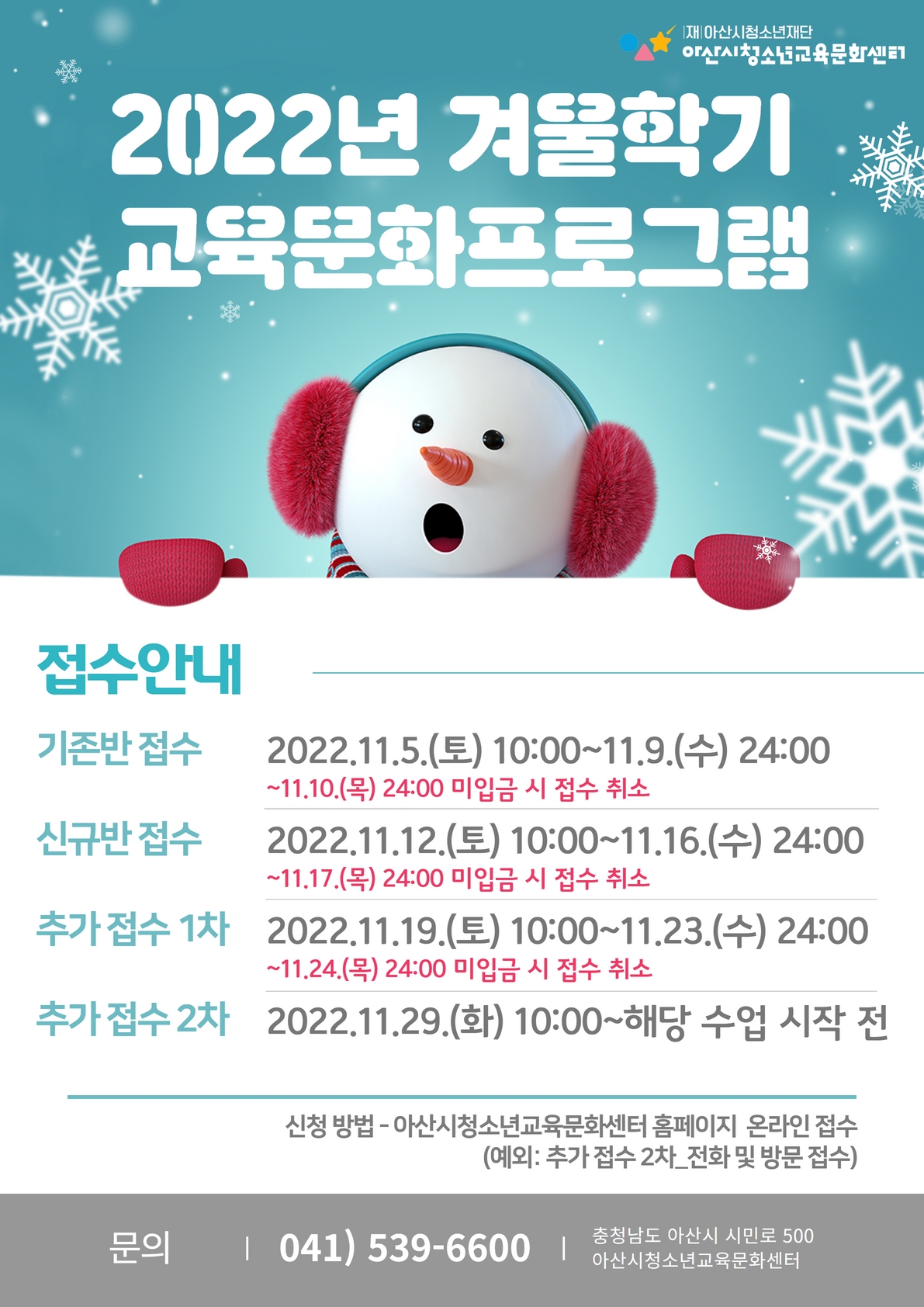 [아산시청소년교육문화센터] 겨울학기 교육문화프로그램