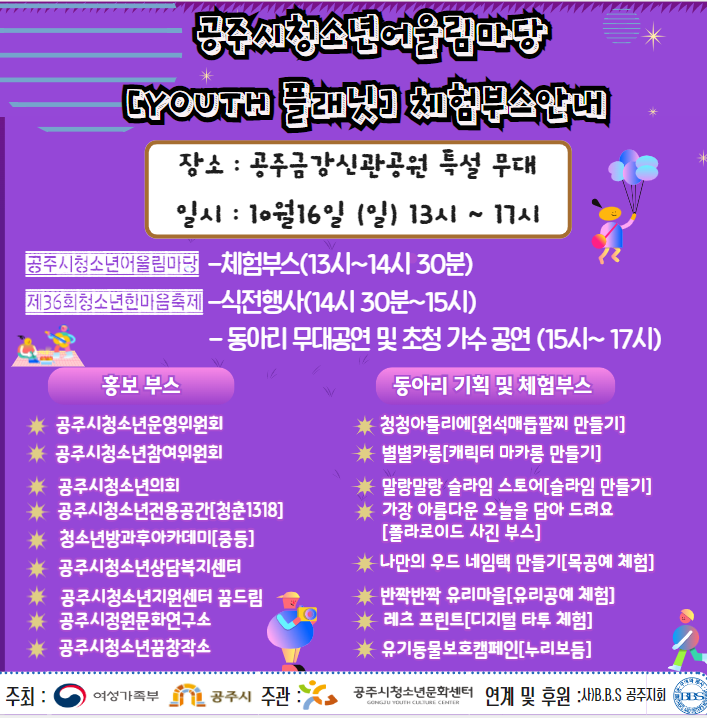 행사명 : 공주시청소년어울림마당[4회-YOUTH 플래닛&청소년한마음축제]